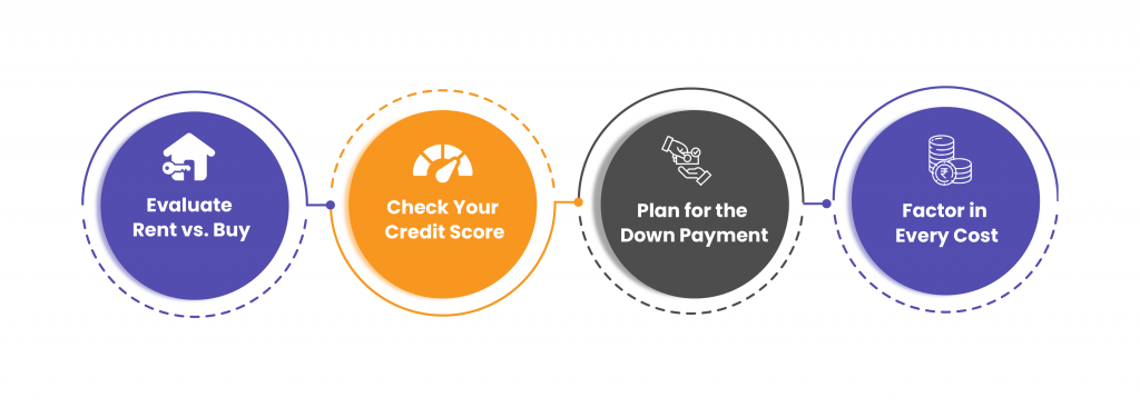 A. Evaluate Rent vs. Buy: Carefully analyse whether it is renting or buying that suits your current financial situation and long-term goals. For a detailed comparison and insights, check out our previous blog here.