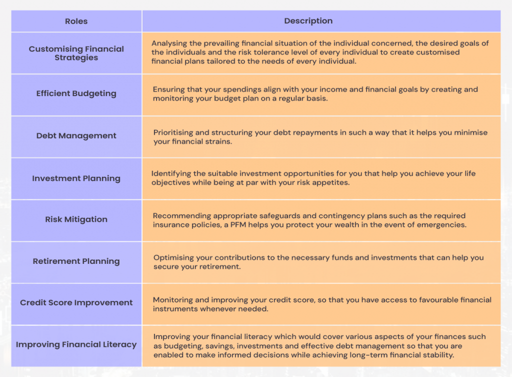Managing personal finances is an essential life skill. But the complexities involved in the effective management of your personal finances entail professional expertise, and here comes the role of your Personal Finance Manager (PFM). By effectively using your PFM’s expertise, individuals can navigate their financial landscapes efficiently while achieving the desired in life. Personal Finance Managers (PFMs) also ensure that your investments are aligned with your life objectives while financial stability remains a top priority all along.