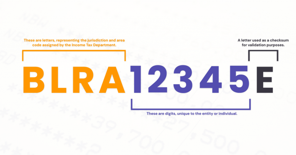TAN is mandatory for any company, Firm, government department, or certain categories of individual taxpayers. TAN is a 10-digit alphanumeric number where the first 4 components are letters, followed by 5 digits and then one last letter as explained below.